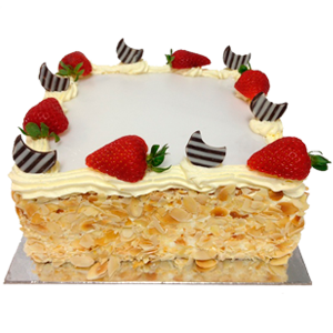 Three layers of feather light sponge filled with fresh cream and decorated to your liking