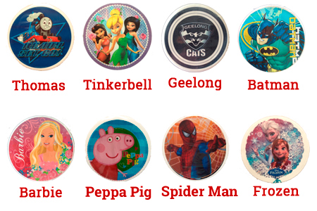 The cake will always be a highlight of your little ones special day. Imagine their delight when they see their favourite Disney character, super hero or footy team as the icing on the cake! Add a little something special to your child’s special day.